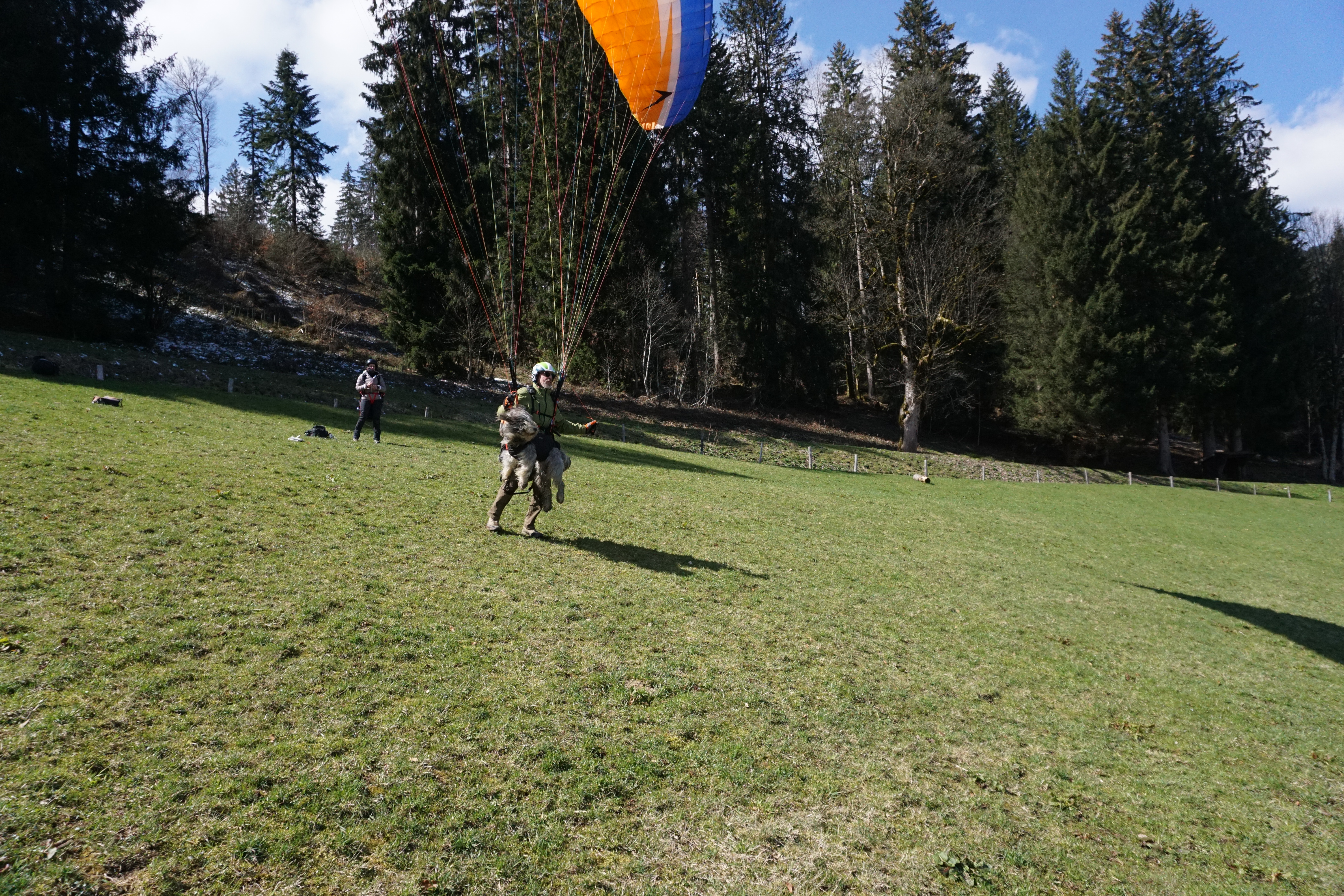 - bei schwereren Hunden vorher Sandsacktraining (das in etwas dem Hundegewicht entspricht), also Übungshangflüge, achte speziell auf die Landung,