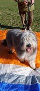 standen Trockenflugübungen mit Sandsack anstelle von Hund im Gurtzeug an. Erste Erkenntnis: Starten geht, Landen ist schwierig, denn das Auslaufen bei der Landung ist nicht einfach mit dem zusätzlichen Gewicht. Immerhin hängt ein 20kg Sandsack an meinen Oberschenkeln! Nach 6 Starts und Landungen war mir klar: Ich muss früher und stärker Bremsen bei der Landung! Liegt aber auch mit am Schirm, wir wollten erst mal kein zusätzliches Geld aufwenden und so musste der alte Schirm wieder ran. Der hat zum Glück ein max. Startgewicht von 130kg. Klar, dass er dafür extra einen neuen Check bekam.
