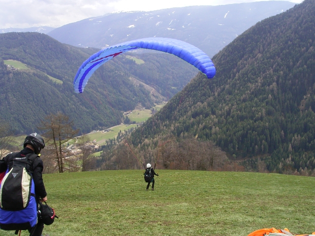 In Südtirol schulen wir bei den "großen" Höhenflügen intensiv die Flugfiguren, die Du zur Prüfung (Start, Acht, Nicken Rollen, eine Abstiegsmethode, Beschleuniger, enge Kurven, Peilen, Landeeinteilung, Landung) brauchst. Darüber hinaus schulen wir einige sicherheitsrelevante Flugtechniken wie Ohren anlegen, Nicken, Rollen und kleine Einklapper während der Pflichtflüge. Rückwärtsstarttechnik vermitteln wir, wenn möglich, ebenso. Die Starts werden z. Teil mit Video aufgenommen und später genau unter die "Lupe" genommen.