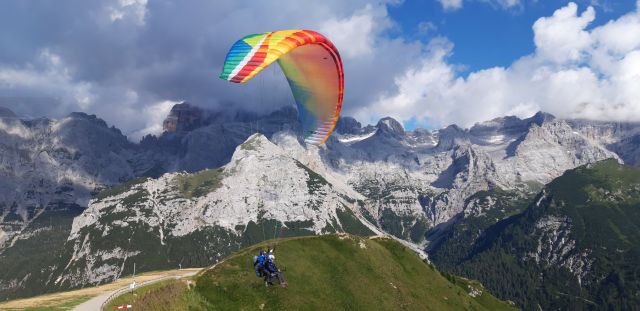 Ende August besuchte FlyART mit seinem Fluglehrer Klaus und einer kleinen Gruppe Flugsüchtiger das Fassatal und damit das Herz der Dolomiten. Camiptello bietet sich als Ausgangsort gut an. Das Wetter ist perfekt zum Fliegen, wir konnten an fast allen Tagen super gut fliegen!