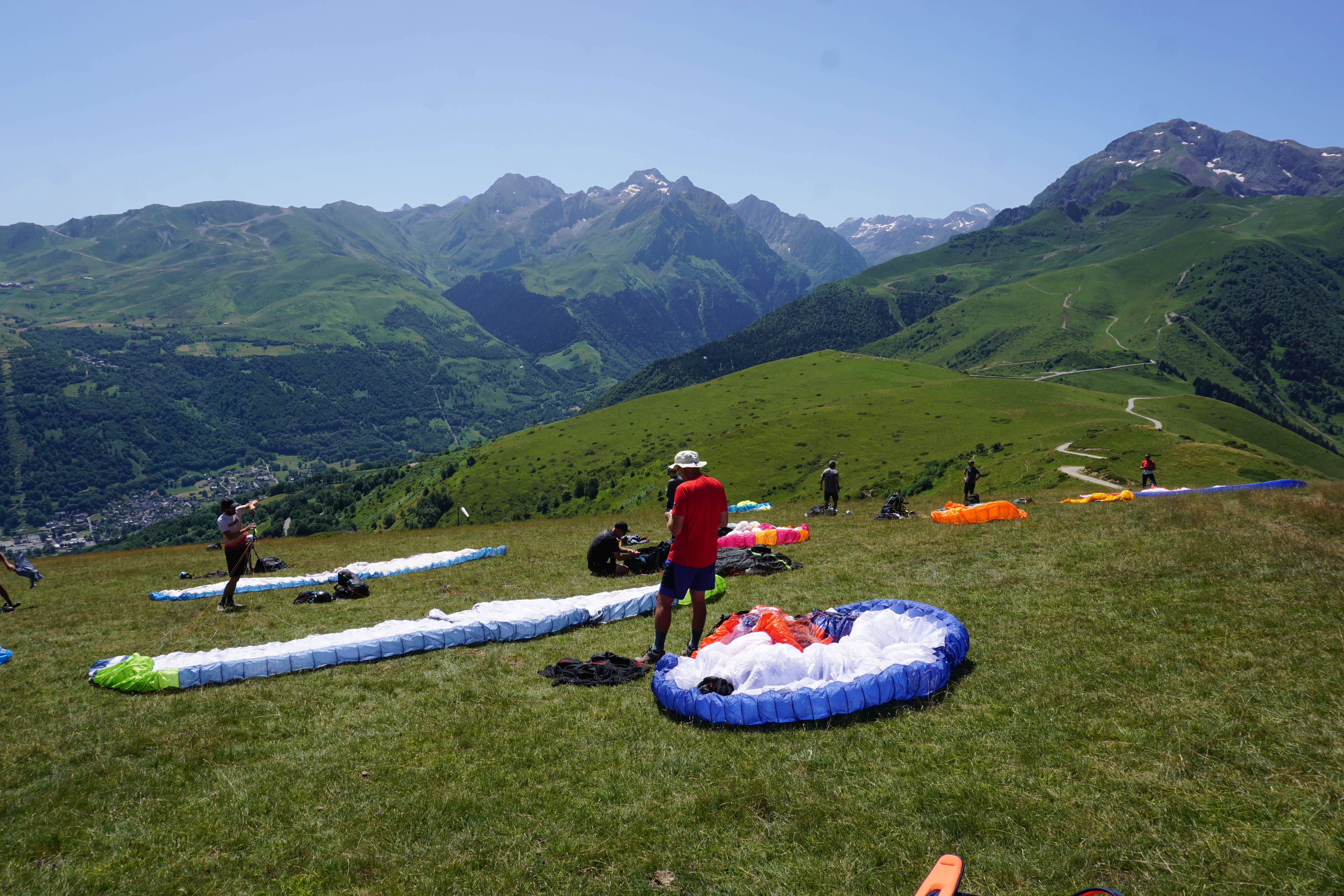 Im schönen(?)Sommeranfang 25 fuhren wir mit dem FlyART Flugschulbus über Südfrankreich, Marseille und Toulouse, in die hohen Pyrenäen. Über eine Woche lang erkundeten wir die Fluggebiete um Loudenvielle herum zu Fuß und auch mit der Babette(Sammeltaxi zum Startplatz, eigentlich Navette) und entdeckten etliche schöne großzügige Startplätze sowie einen perfekten Landebereich. Neben thermischen Flügen konnten wir auch kleinere Strecken fliegen, die bei noch besserer Ortskenntnis sicher noch deutlich zum Verlängern sind. Wir starteten in 6 verschiedenen Fluggebieten innerhalb und ausserhalb unseres Tales Val de Louron und konnten etliche Stunden Flugzeit sammeln; Sensationell für den verregneten bayrischen Sommer!!