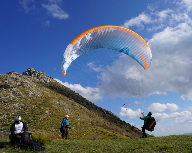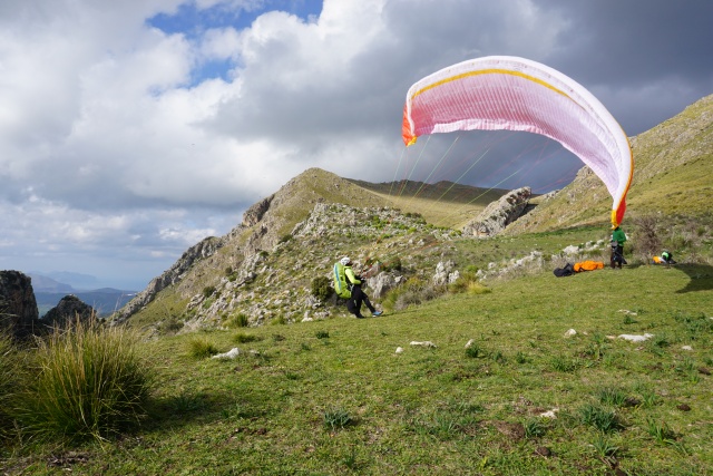 wir starten heute mit Adriano, unserem einheimischen Gelände- und Wetterexperten Richtung Osten, Cefalu, einem bekannten Touri-Ort. Zunächst wollen wir direkt an der Küste Soaren, doch nachb dem ersten Start lebt der Wind stärker auf und wir verziehen uns zum Mittagessen. Am Nachmittag stehen wir 300 m über der Küste und fliegen zum Strand von Cefalu.
