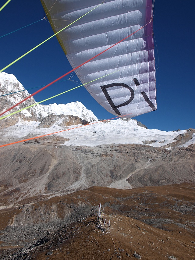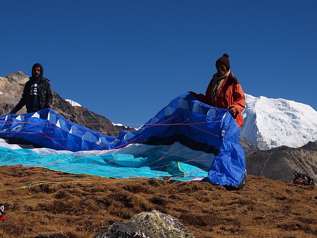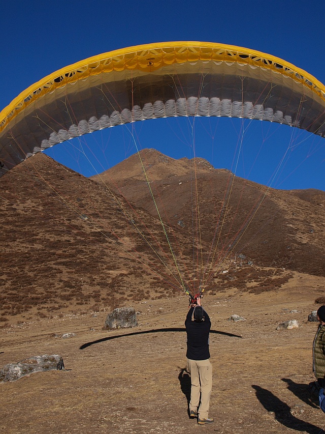 Am Nachmittag in Kjangin Gumba hatten wir einen so schönen Wind, das einige Piloten ihre Schirme in die Luft hielten. Ein so hohen Trainingsplatz hatte FlyART bisher noch nicht