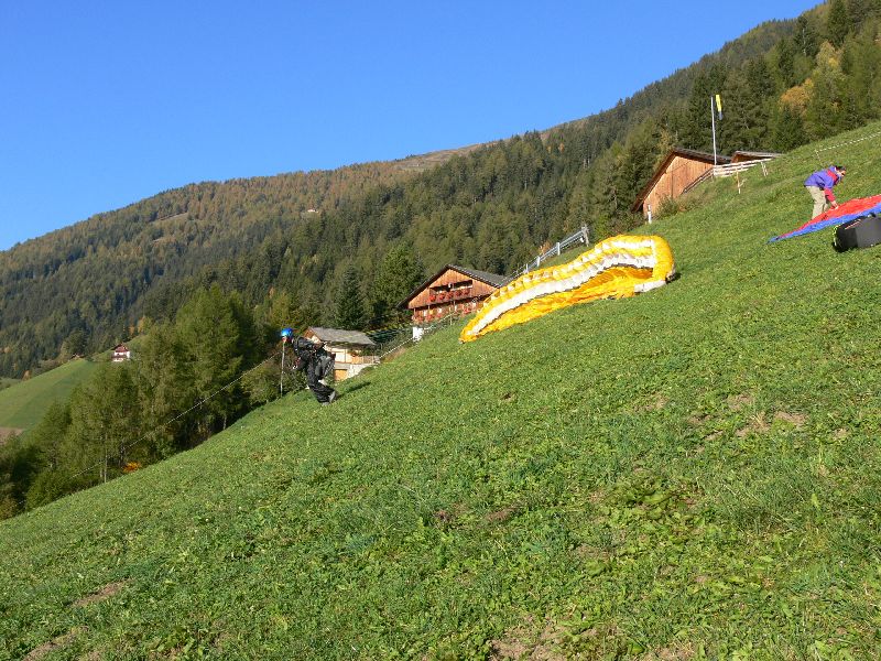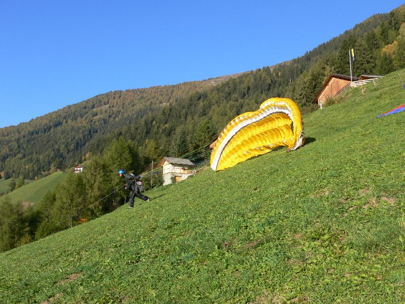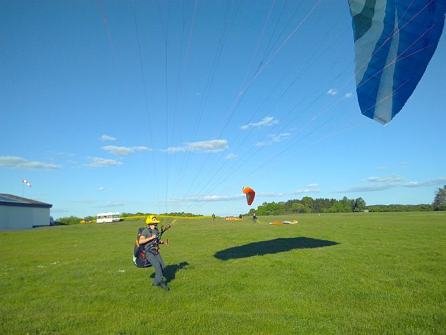 |  Der Schirm ist schon vor dem Piloten, er bremst zu wenig oder öffnet die Bremsen bereits zum Startlauf. | Kontrollblick |