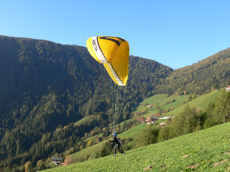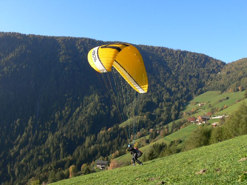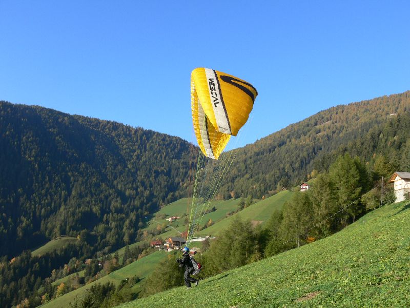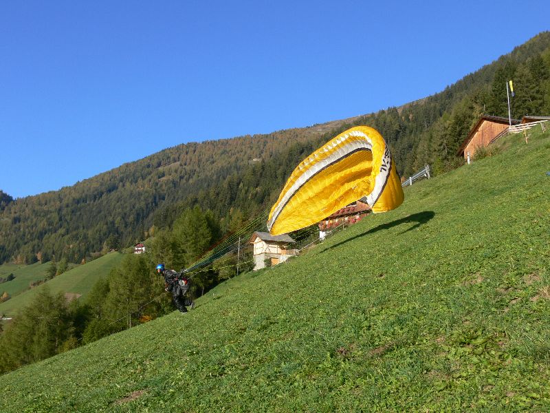 |  Der Schirm ist jetzt senkrecht über dem Piloten. Mit dem Kontrollblick prüft der Pilot, ob