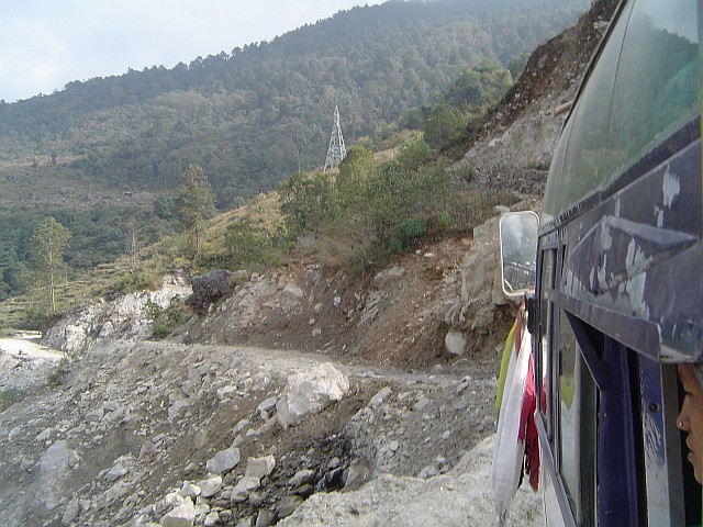 Noch im Dunkeln stehen wir am nächsten Morgen auf, um mit Sack und Pack zum Busbahnhof zu fahren. Jitman kann leider nicht mit. Er ist durch geplante Immobilientransaktionen gehindert, dafür übernimmt Kami die Führung. Drei Träger stossen am Bahnhof zur Gruppe, sodass wir jetzt zu Fünft nach Langtang im Bus sitzen. 120 km und 10 Stunden Fahrtzeit! so die von mir nicht so ernst genommene Drohung am Vortag. Sie bewahrtheitet sich aber!