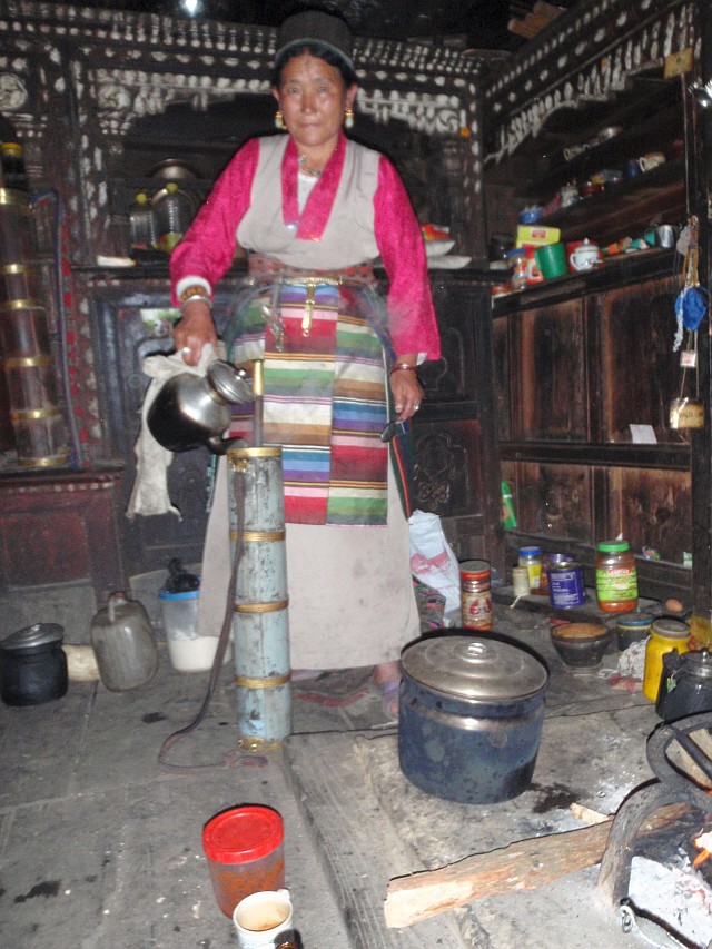 |  ... beim tibetischen Tee zubereiten. | Eine Sherpa Frau ... |