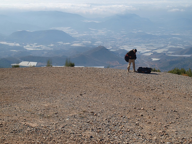 Zunächst fahren wir ins Hinterland von Almeria zum gut angelegten Startplatz Castala. Der Startplatz ist groß genug um drei Schirme auslegen zu können, der Untergrund besteht aus klein körnigen Schotter und ist flach in Windrichtung geneigt. Startrichtung: Südost.