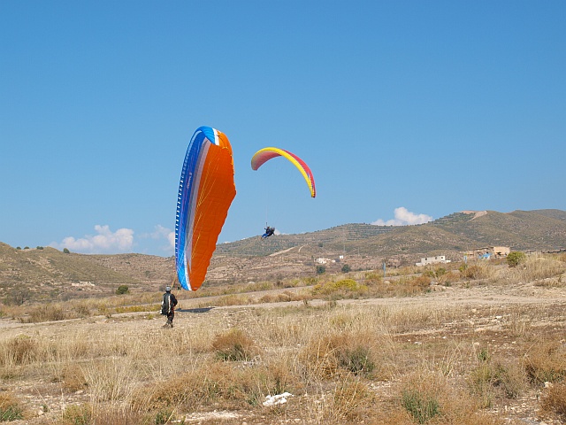 Nach einem Fischessen fahren wir dann wieder Richtung Osten bis nach Guainos. Hier in die Berge hinaufgefahren, finden sich mindestens 2 von Alains Geheimtipps zum Starten. Der Strand bei Adra oder Guainos bajos sind hier die Landeplätze. Kai und Alain schwingen sich in die Luft und fliegen bei recht unruhigen Bedingungen zu unterschiedlichen Landeplätze. Da Isabell, unsere Rückholerin heute leider nicht da bei ist, muß ich das Auto herunter fahren.