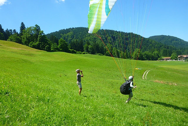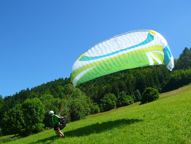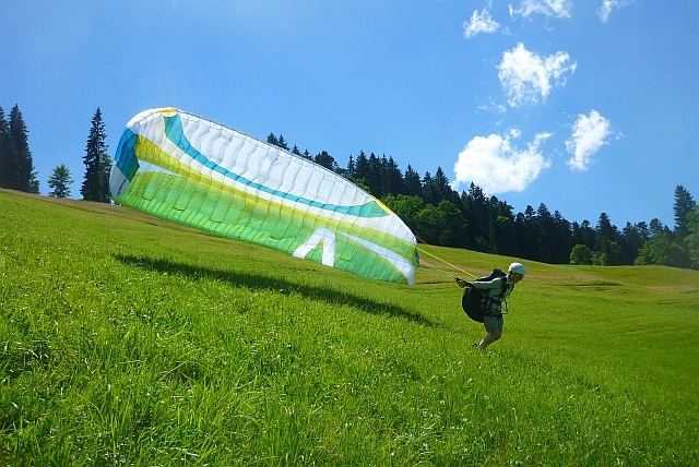 - Aufziehübungen und Kontrolle des Gleitschirm mit ev. kleinen Flügen und richtigen Flügen am 2. Tag