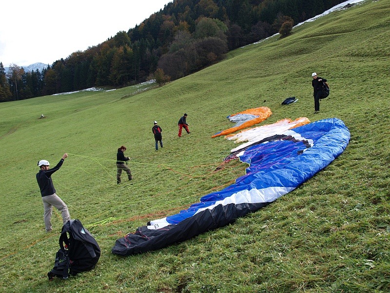 FlyART mit einer Gruppe bei der Startvorbereitung am Übungshang oberhalb vom Tegernsee. |